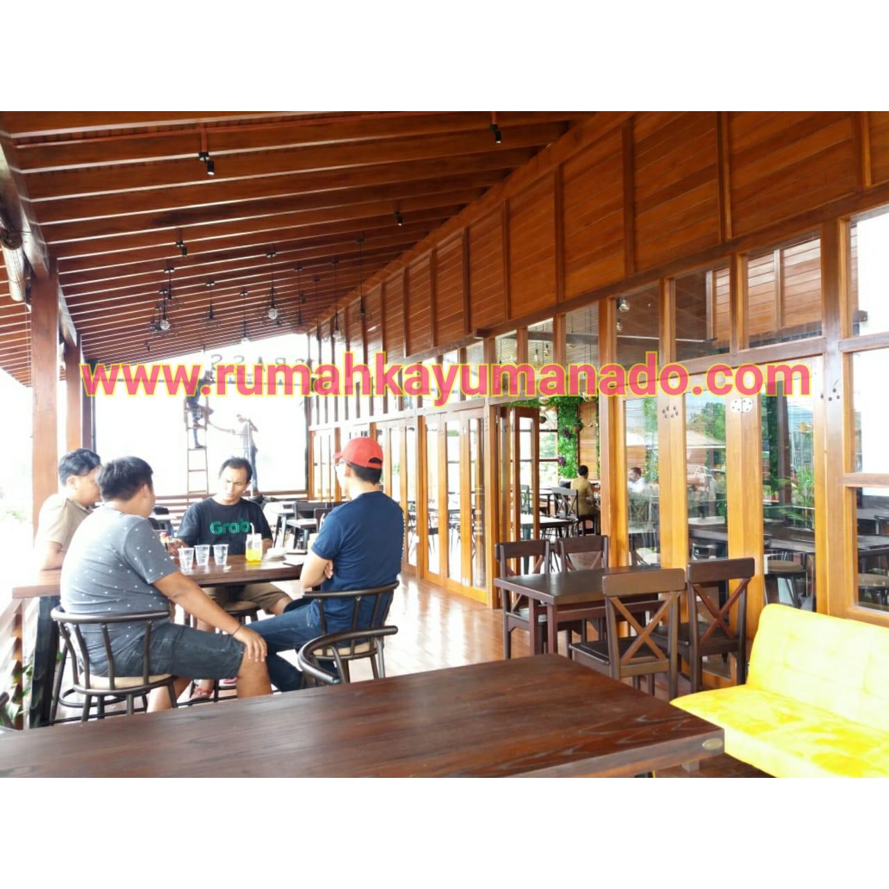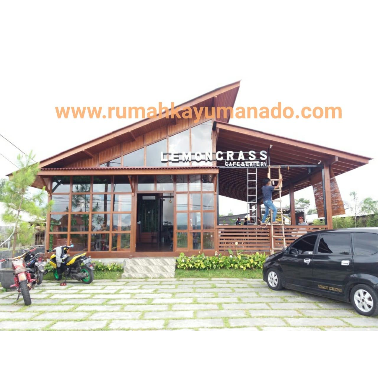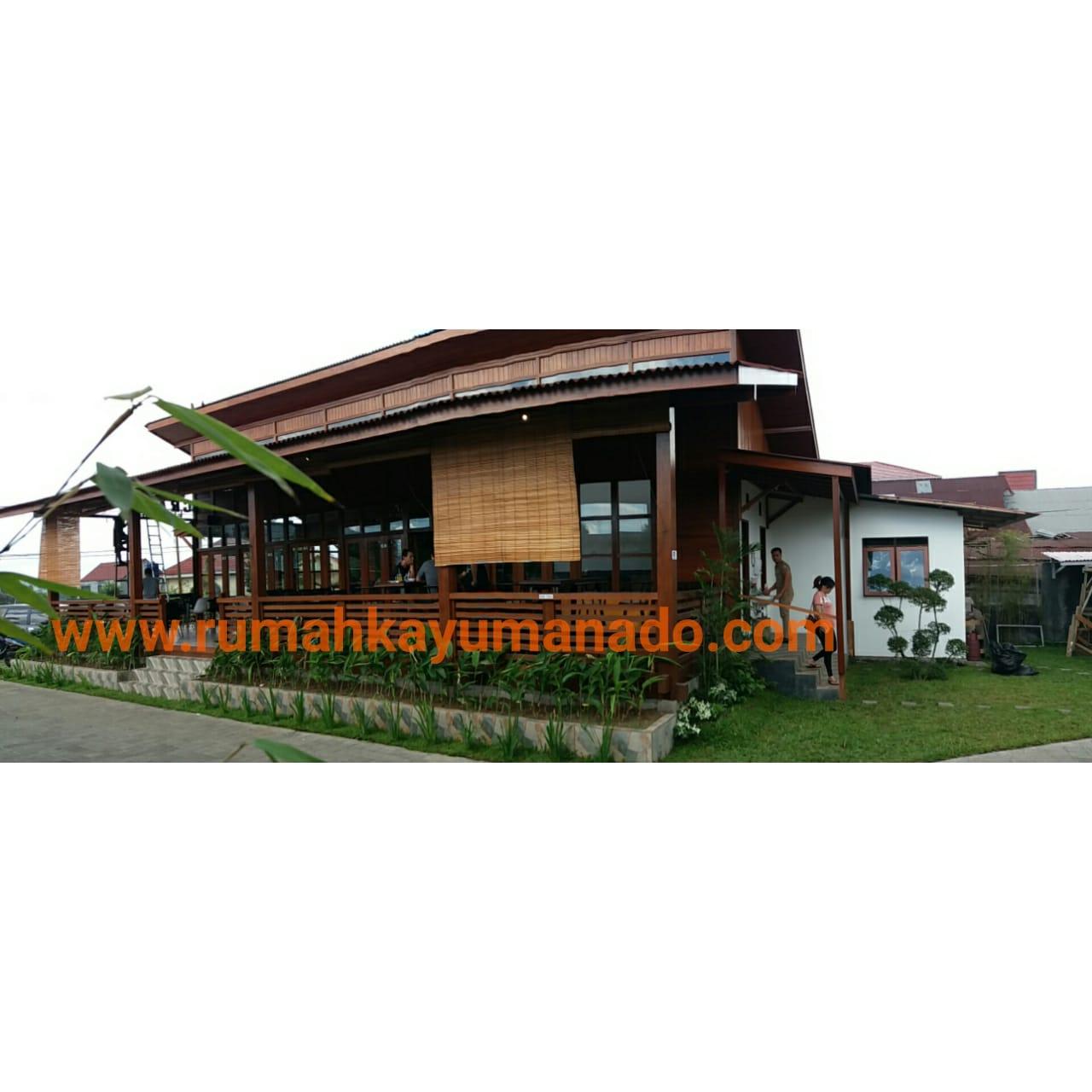 Client IBU JILLY Proyek Cafe Rumah Kayu yang terletak di Tomohon, Manado. Order 1 (Satu) unit rumah kayu Kayu Tipe Produk = RKMM-DAHLIA-150m2