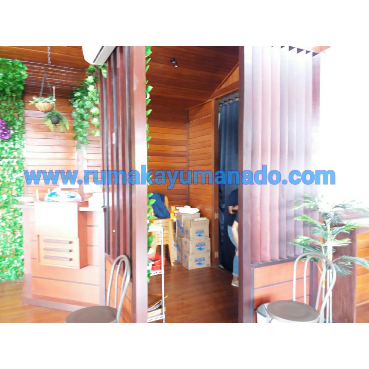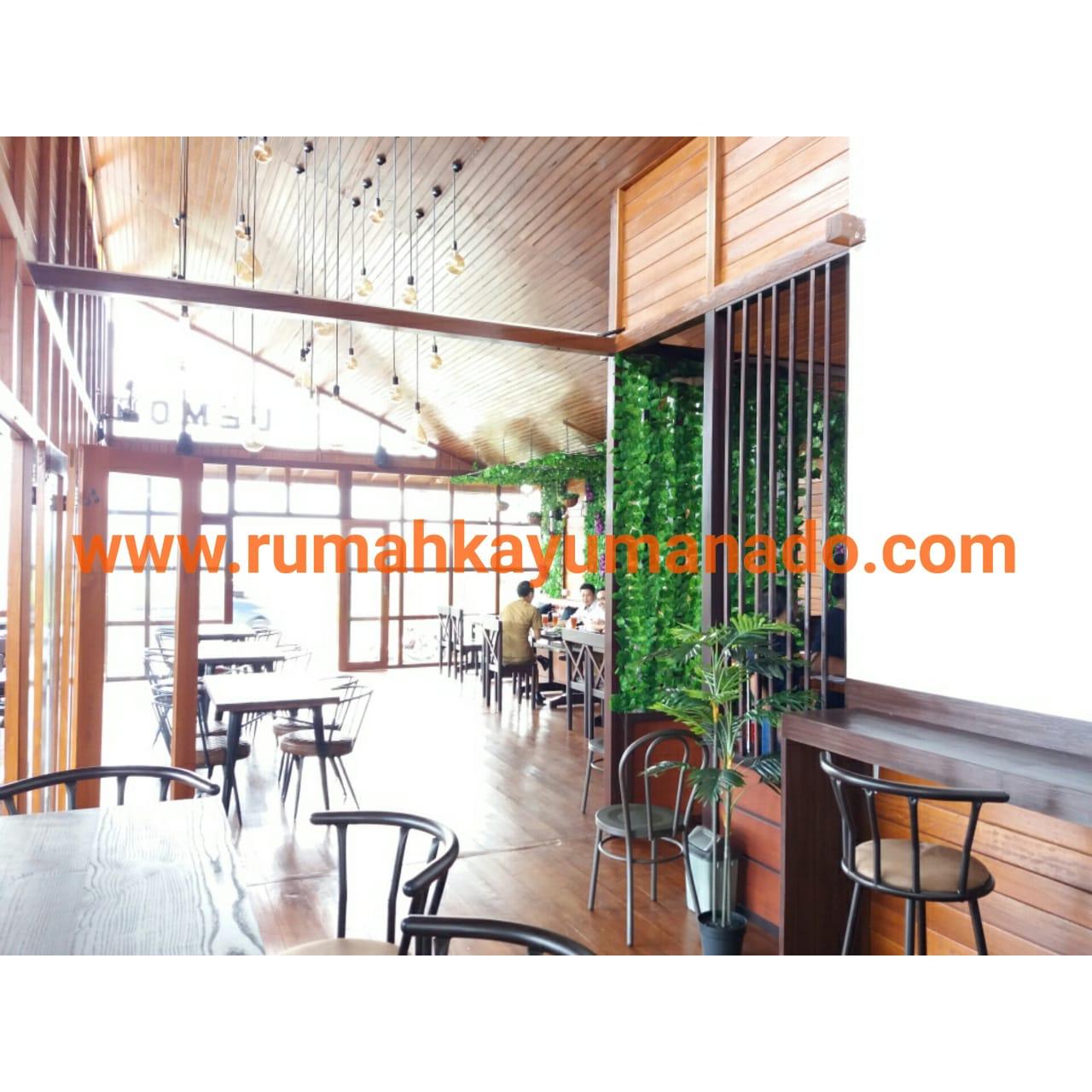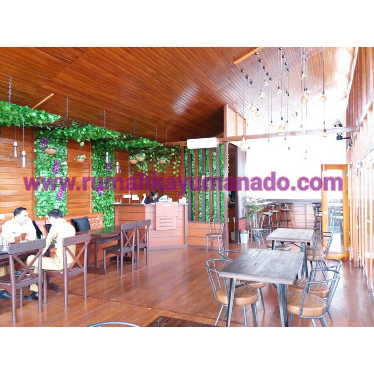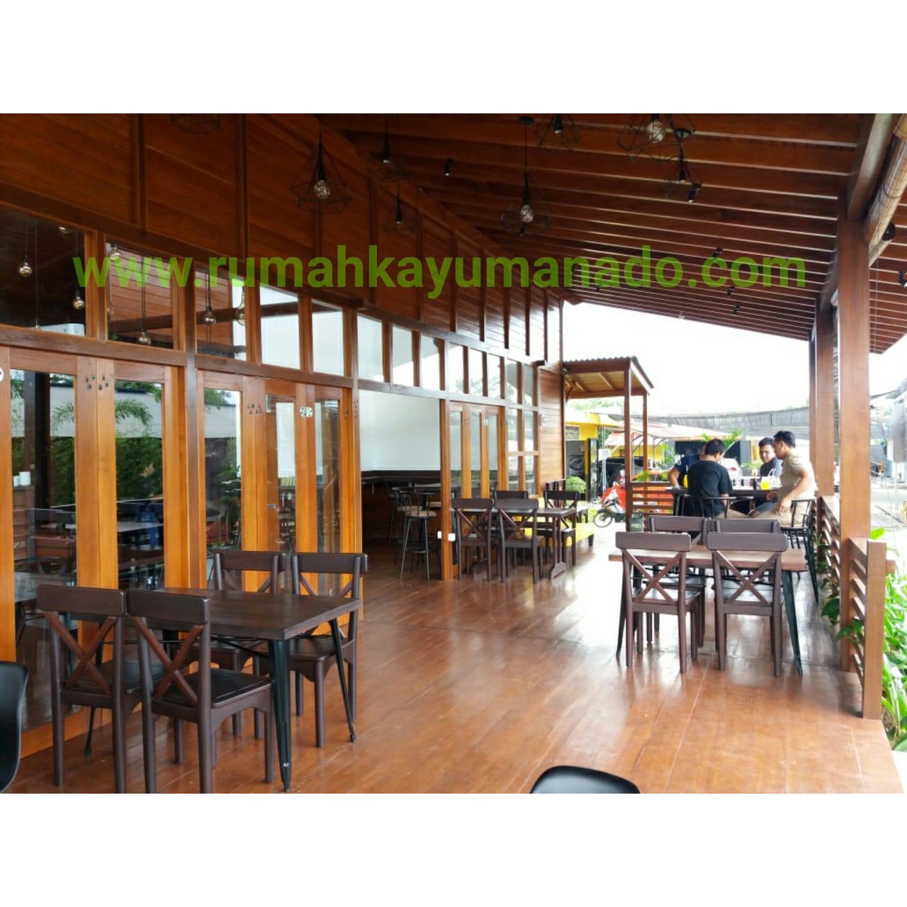 Client IBU JILLY Proyek Cafe Rumah Kayu yang terletak di Tomohon, Manado. Order 1 (Satu) unit rumah kayu Kayu Tipe Produk = RKMM-DAHLIA-150m2